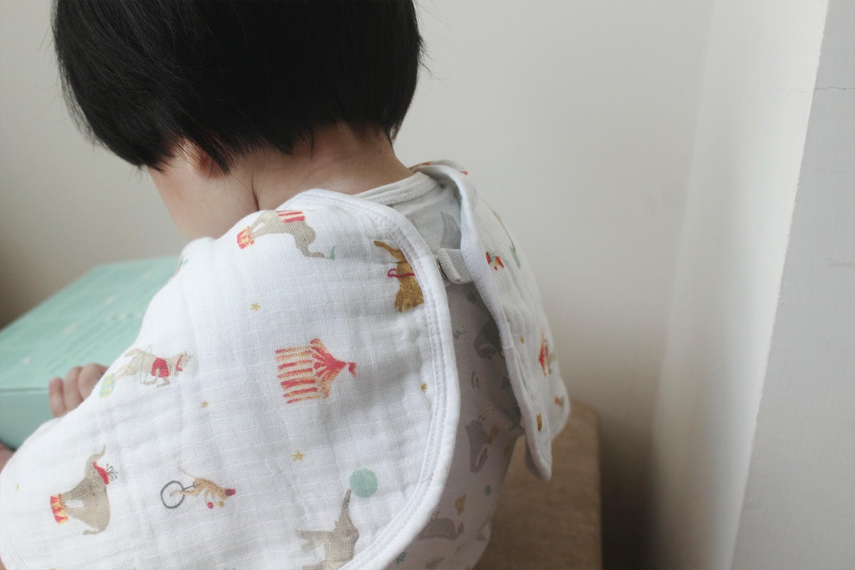應該有不少新手爸媽都覺得「拍嗝」才是育兒路上的最大魔王吧?常常拍了半個小時,手痠得不得了卻一聲「ㄍㄜˊ」都沒聽到;或是好不容易拍出嗝來,又常伴隨著大吐奶,瞬間把全身弄得溼答答;這時候,aden+anais 的經典圍兜拍嗝兩用巾就能派上大用場!