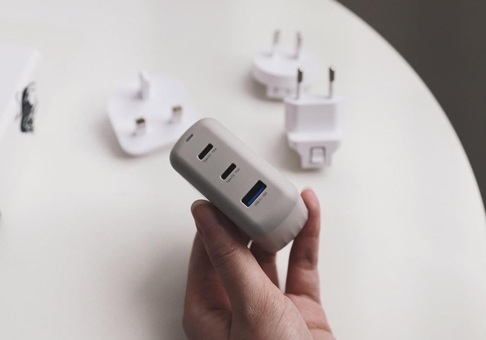 快充頭插腳可折疊,外出攜帶更加方便收納,除此之外,隨盒還附贈附贈3款轉接插頭(UK/EU/AU),通用全球兩百多個國家,一顆就能環遊世界。